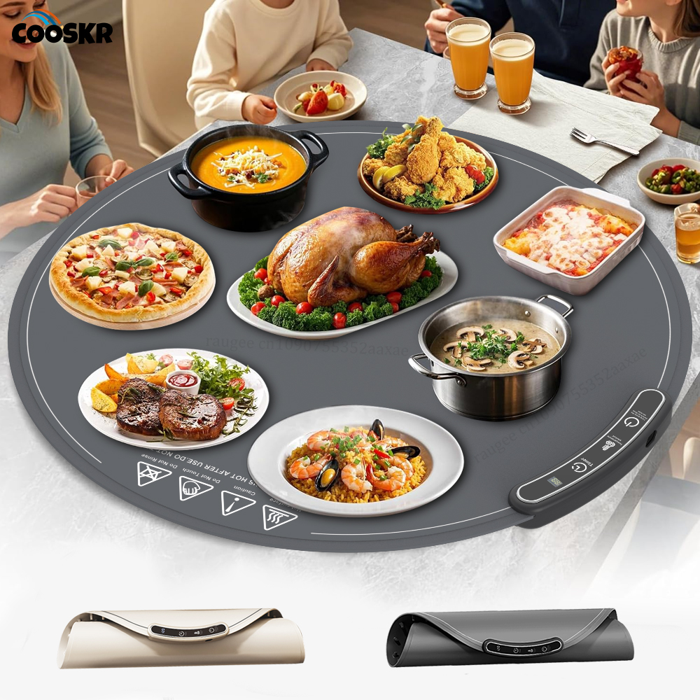 Portable Electric Food Warming Mat, Silicone Round Tray With Fast Heating & Temperature Control grey