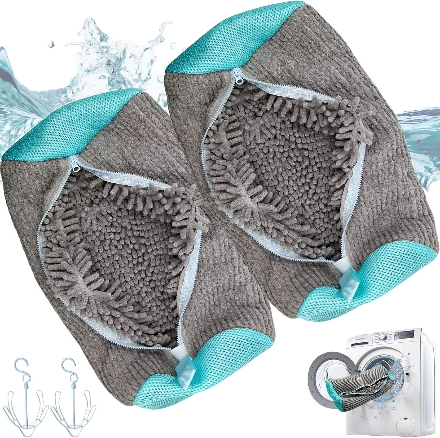 Shoe Washing Bag Microfiber Closure Washing Machine Laundry Bag For Sneakers 1 Pc Gray