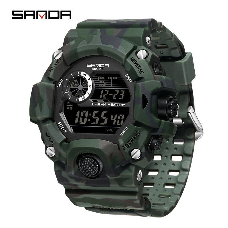 Waterproof Luminous Electronic Watch, Students Digital Watches, Fashion Military Multifunctional Date Alarm Clock green Black