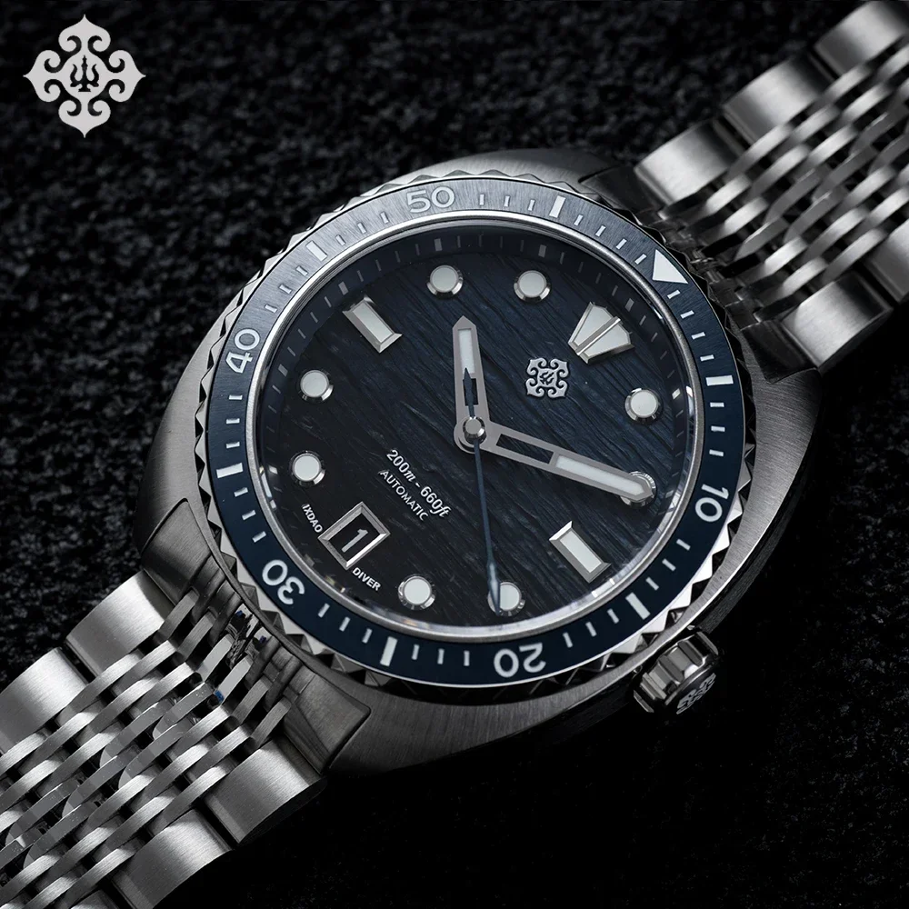 New Men Automatic Mechanical Watch, Dragon Scale Pattern Diving Watch, 20Bar Stainless Steel BWG 9 Reloj Hombre blue Wave Patterns
