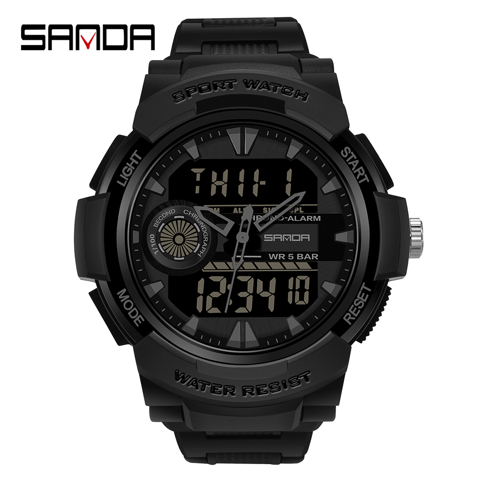 Student Sports Watch, Dual Display Waterproof Digital LED Watch, Multifunction Electronic Student Timepiece all Black