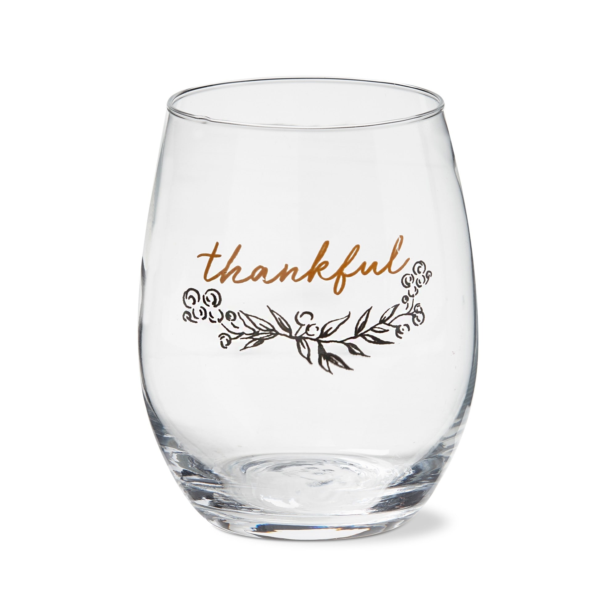18 oz. Thankful Stentiment Clear Glass Stemless Wine Drinkware Dishwasher Safe Beverage Glassware Dinner Party Wedding