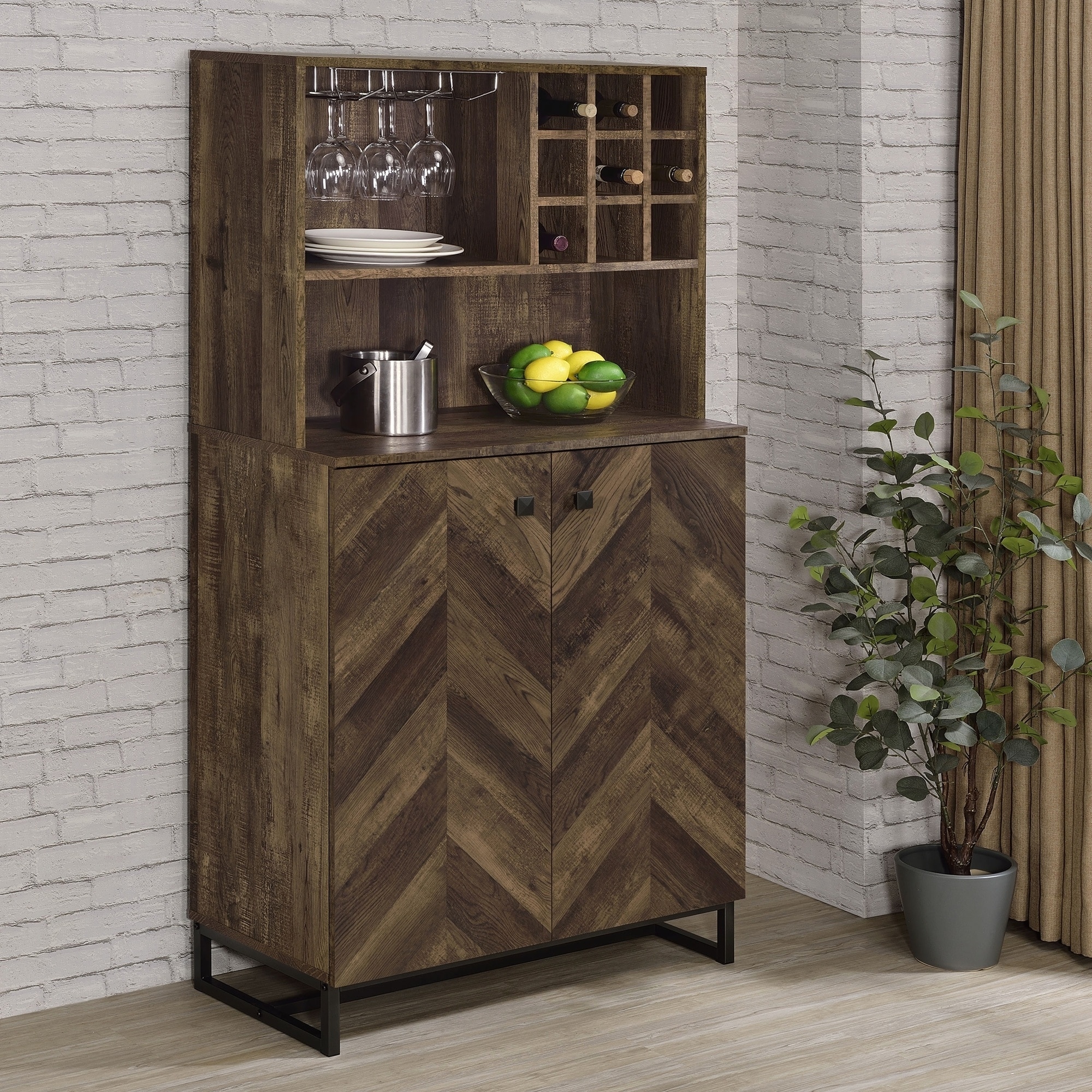 2-Door Wine Cabinet with Herringbone Design and Ample Storage for Vintage and Modern Decor
