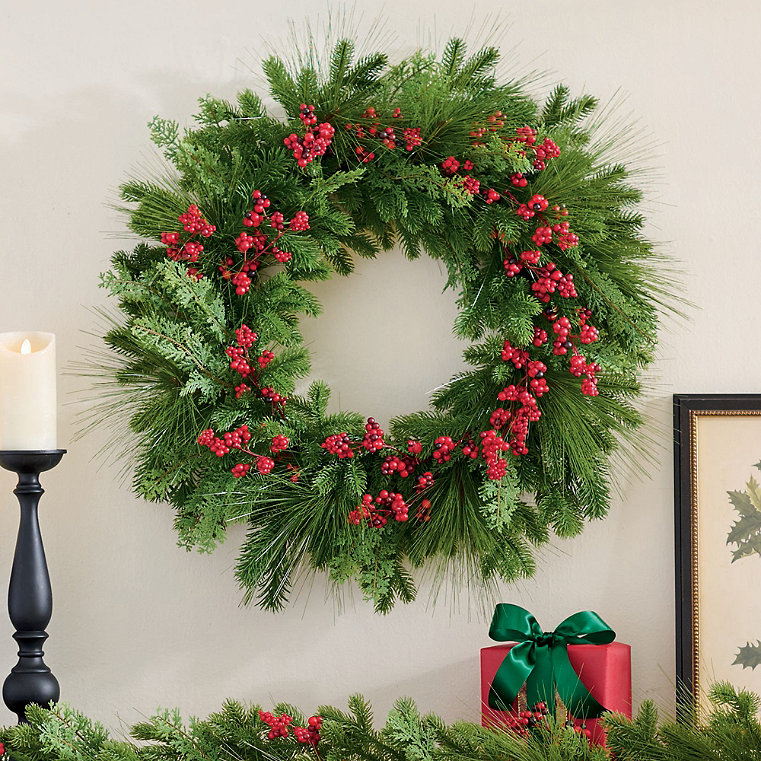 Christmas Real Touch Berry Mix Wreath, 26" - Grandin Road