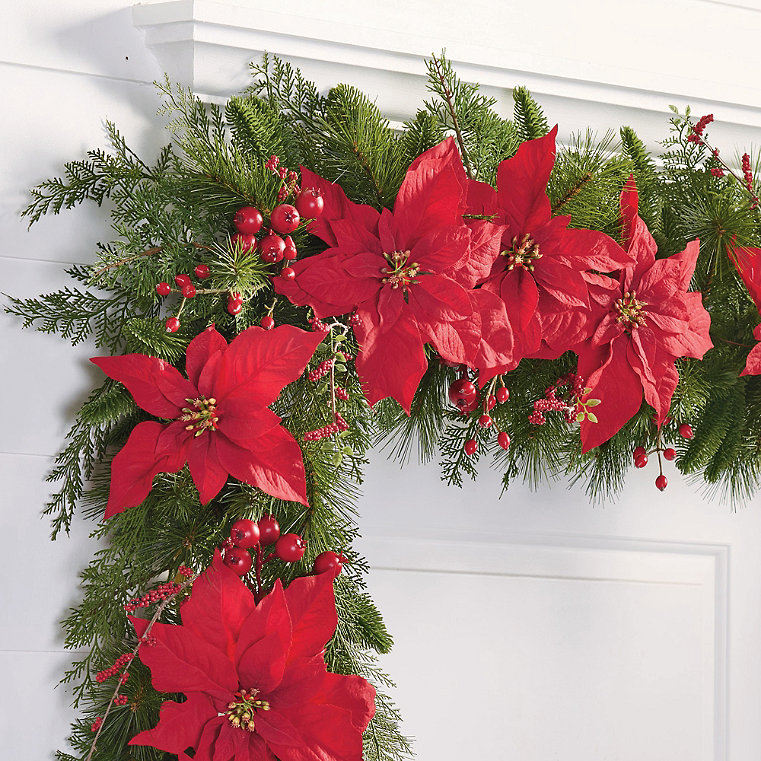 Christmas Poinsettia Berry Garland - Grandin Road
