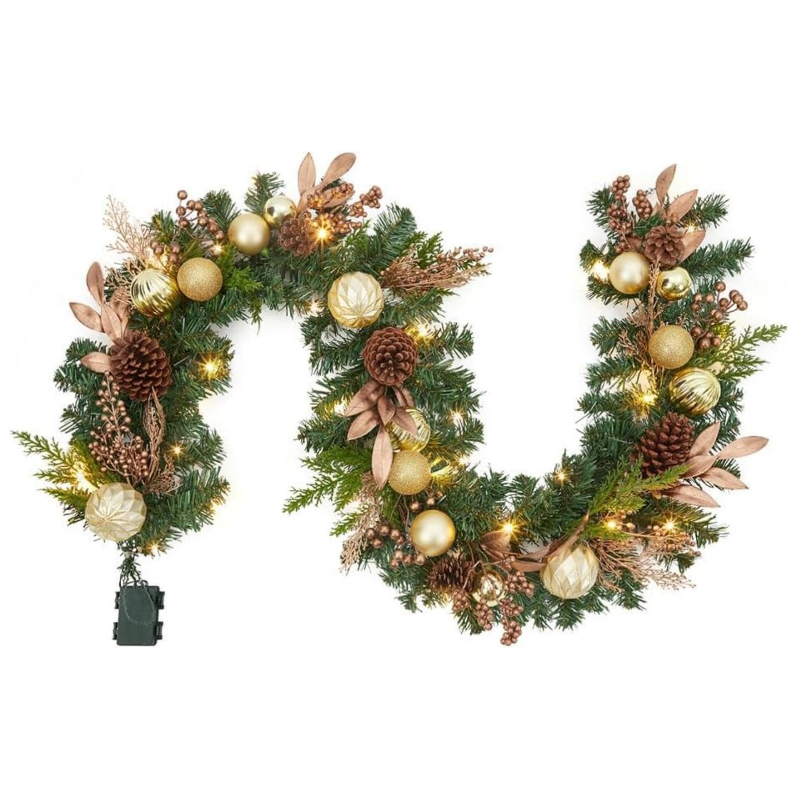 6 Ft Artificial Christmas Garland with Lights, Gold