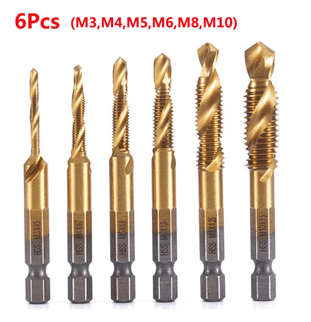 Titanium Metric Tap Drill Bit Set For Hex Shank Power Tools 6 Pcs Gold Set 2