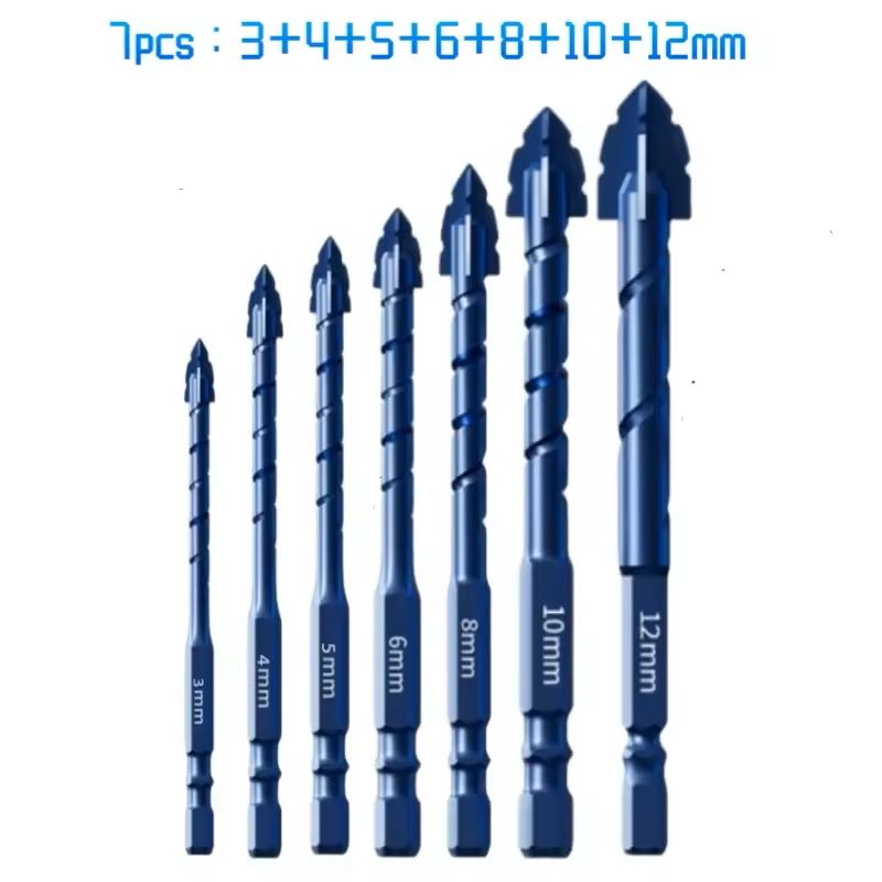 Serrated Drill Bit Set For Glass Tile And Concrete With Four Edge Tips In Assorted Sizes 7pcs 3mm 4mm 5mm 6mm 8mm 10mm