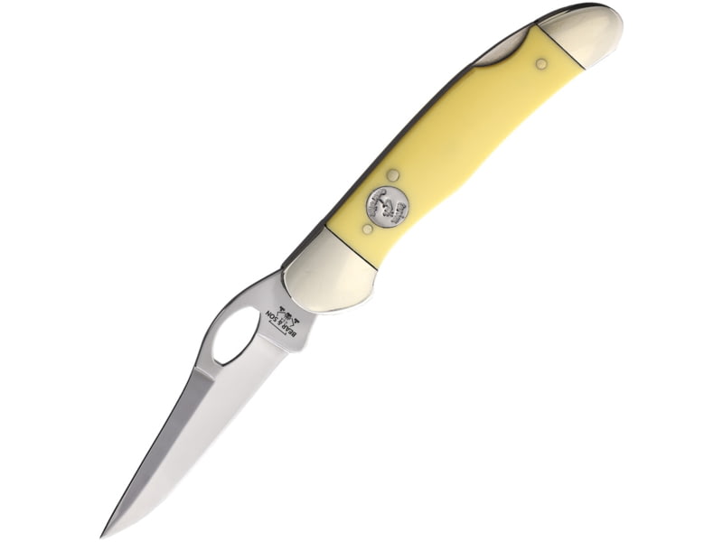 Bear & Son Cutlery Yellow Delrin Locking Cowhand Folding Knife 4.25in Closed 3.25in 1095 Carbon Steel Satin Blade Yellow Delrin Handle C3150L