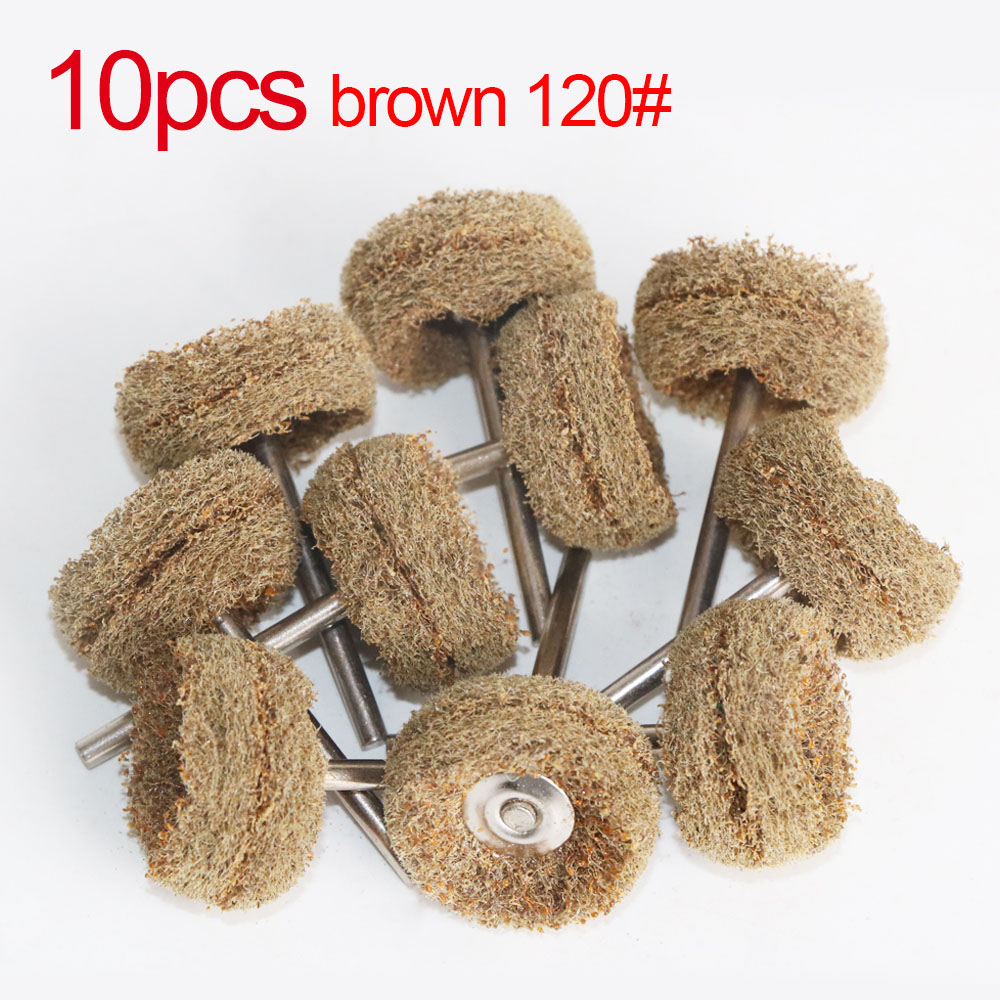 Wool Felt Sanding Grinding Buffing Wheel With Shank, Cotton Polishing Head Brush For Dremel Rotary Drill Tools brown P120 10pcs with 2.35mm Shank