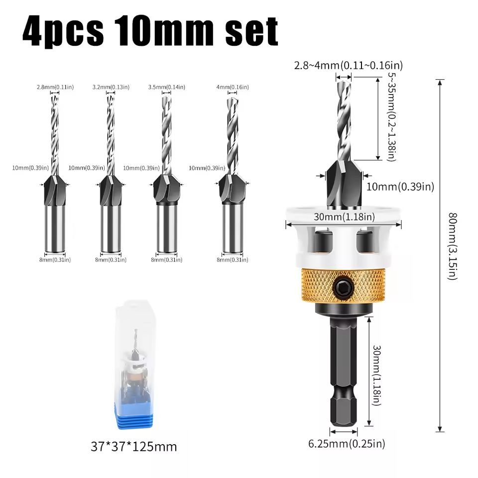 Adjustable Countersink Drill Bit Set For Woodworking And Precision Boring 4pcs 10mm