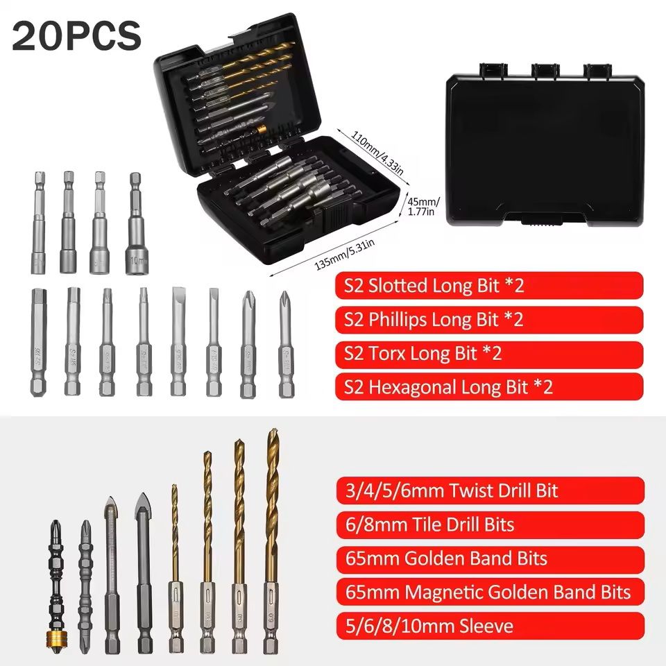 Drill And Screwdriver Bit Set With Storage Case 20pcs Set