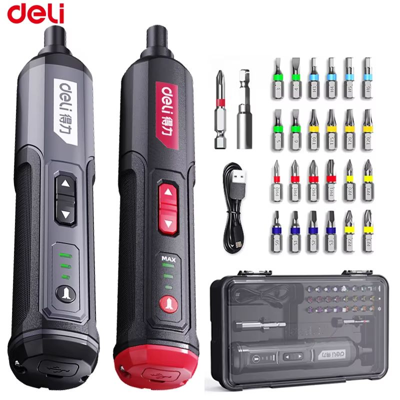 DELI Cordless Electric Screwdriver Set 4V 2000mAh Torque Adjustment Multi Function Power Drill Repair Tools Kit 1 b2 r