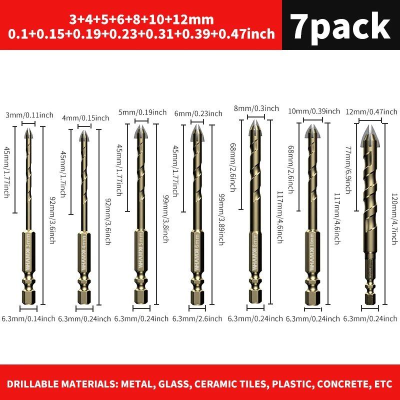 ToughBore Tungsten Carbide Tile And Glass Drill Bit Set 5pc 7pc Multi Surface Set 7 Pcs