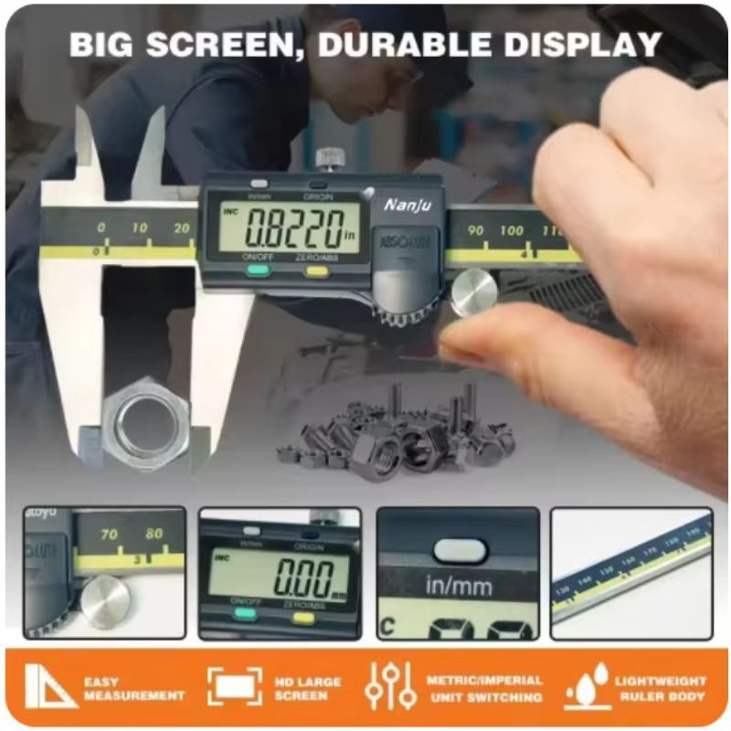 NanJu Digital Vernier Caliper Precision Stainless Steel Measuring Tool With LCD Display (150mm 200mm 500 197 30 200mm