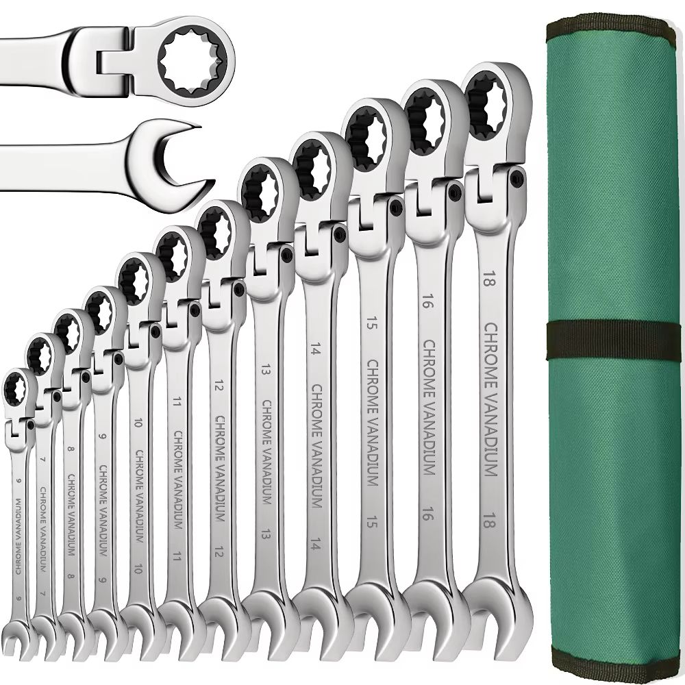 Flexible Head Ratcheting Wrench Set 822mm Metric Combination Spanner Kit With Carry Bag 10 Pcs(8 19mm)