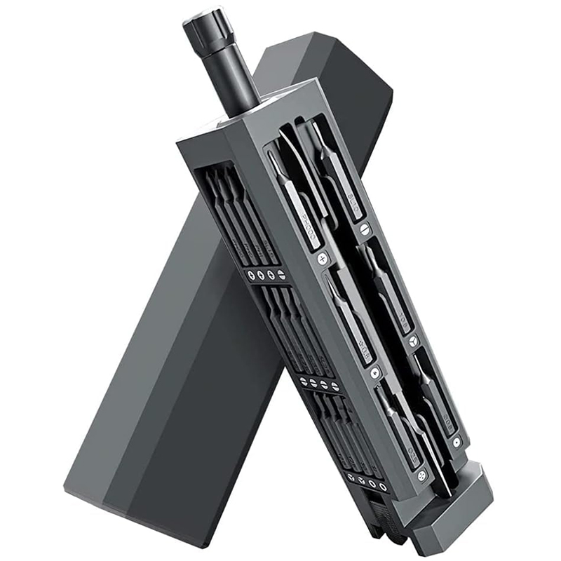 Portable EDC Multi Function Screwdriver Set With Magnetic Torx, Phillips, Hex Drill Bit Outdoor Home Repair Tool grey