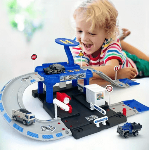 Interactive City Car Track Set With Parking Lot Road Play System medium Yellow Track