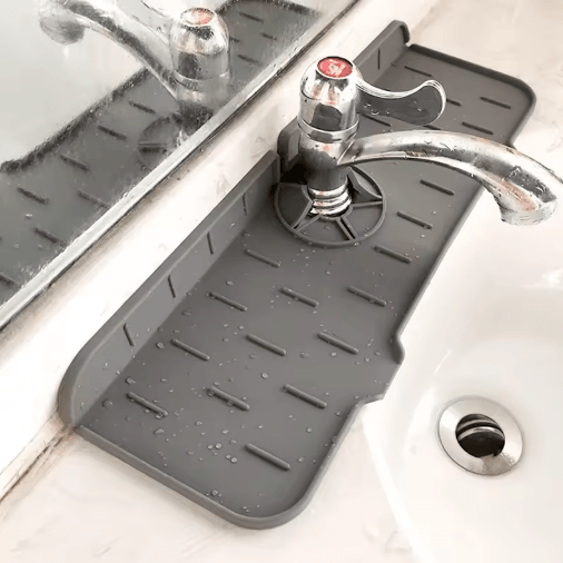 Silicone Faucet Splash Guard & Sink Water Catcher Mat gray 37x14cm