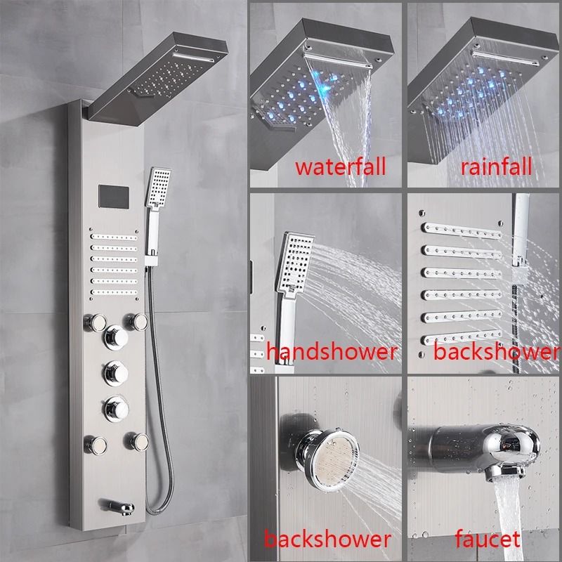 LED Rainfall Shower Panel With Digital Display And Massage Jets black 1039