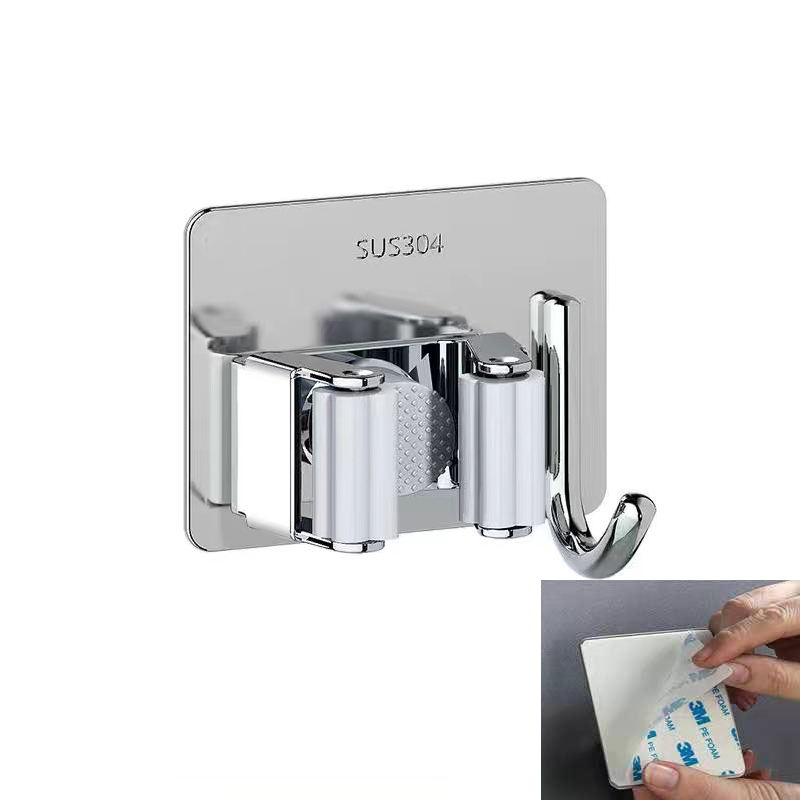 Home Storage Rack Bathroom Suction Hanging Pipe Traceless Hooks Wall Mounted Mop Organizer Holder Waterproof Broom Hanger silver Hook