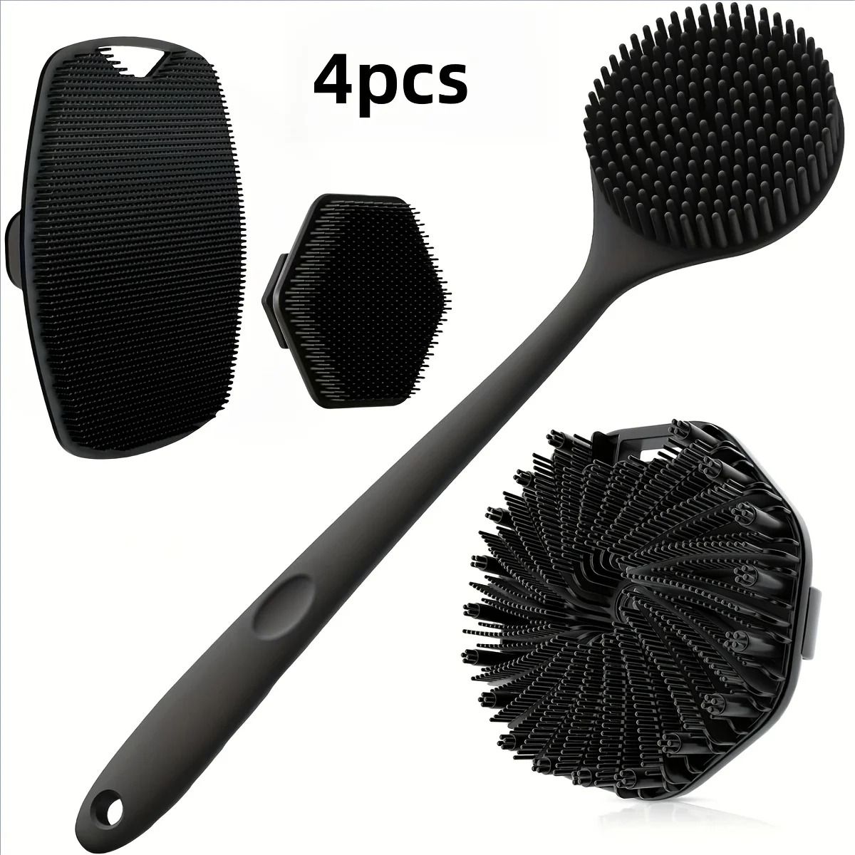 4 Piece Soft Silicone Bath Brush Set With Non Slip Handle For Easy Cleaning And Gentle Exfoliation long Handle