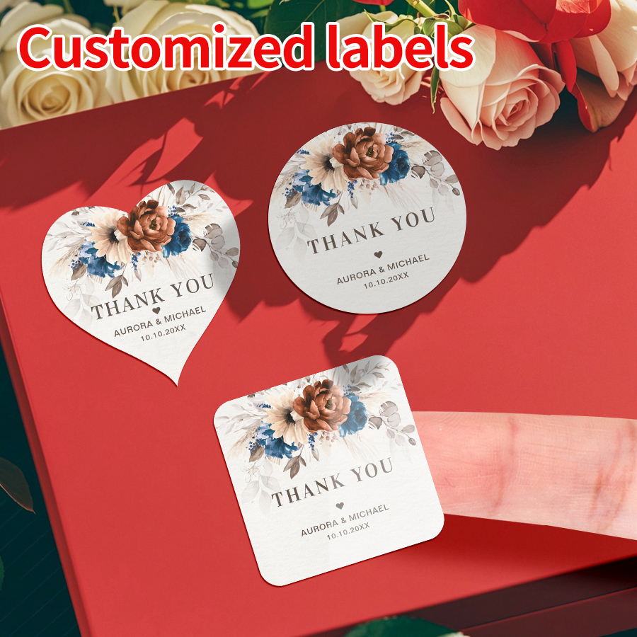 Floral Custom Labels Bulk For Wedding Gifts, Personalized Party Stickers, Waterproof Sealing Decals, DIY Craft Supplies round 12pcs 4x4cm