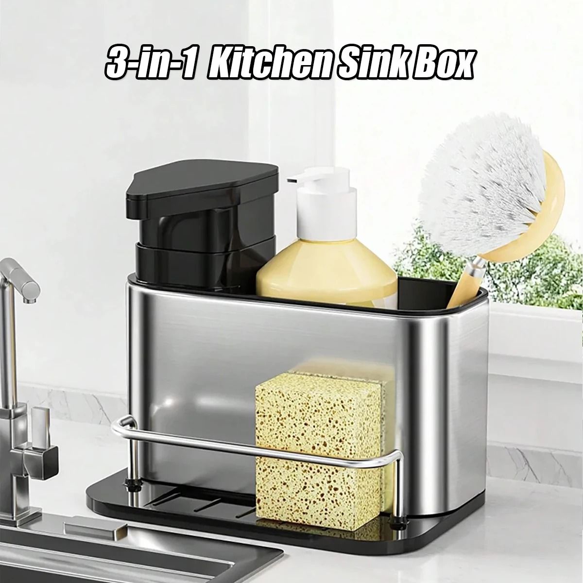 3 In 1 Stainless Steel Kitchen Soap Dispenser With Sponge And Cutlery Organizer rotundity