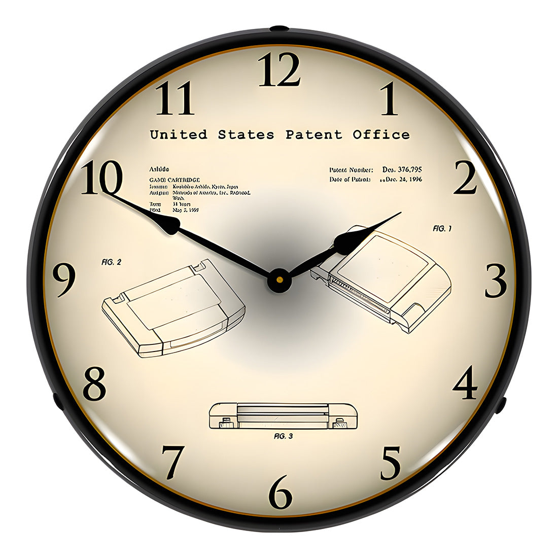 Collectable Sign and Clock 1995 Nintendo 64 Game Cartridge Patent Blueprint Backlit Wall Clock