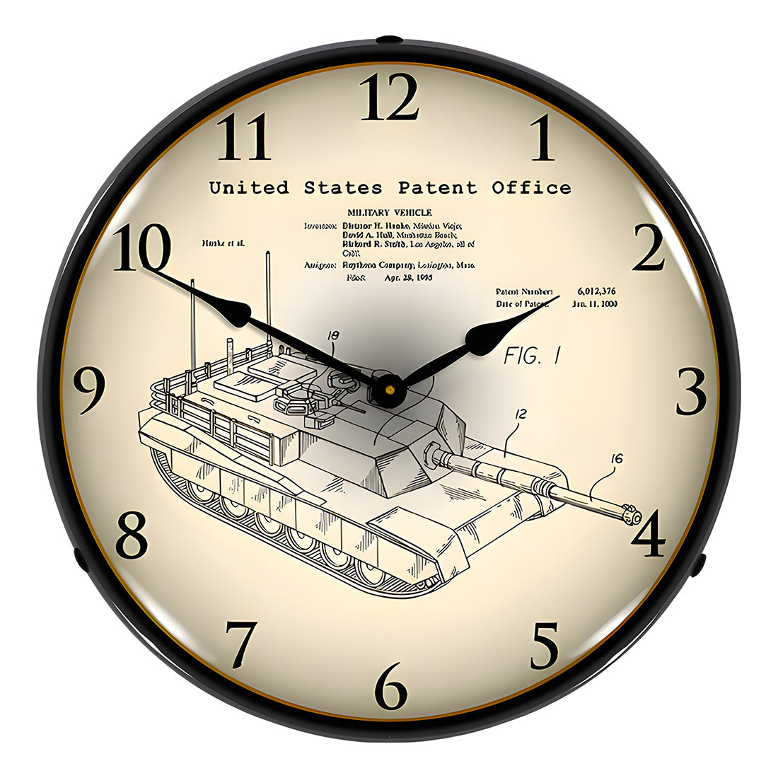 Collectable Sign and Clock 1995 M1A2 Abrams Main Battle Tank Patent Blueprint Backlit Wall Clock
