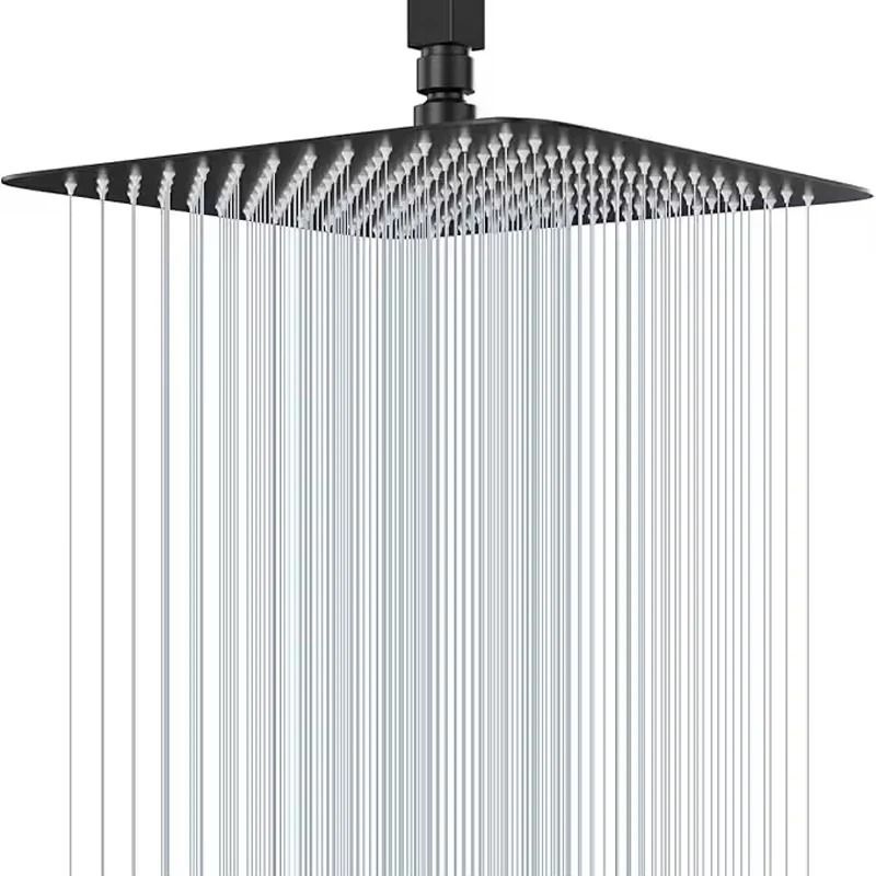 Stainless Steel High Pressure Waterfall Shower Head Large Flow Pressure Boosting 12 In Matte Black