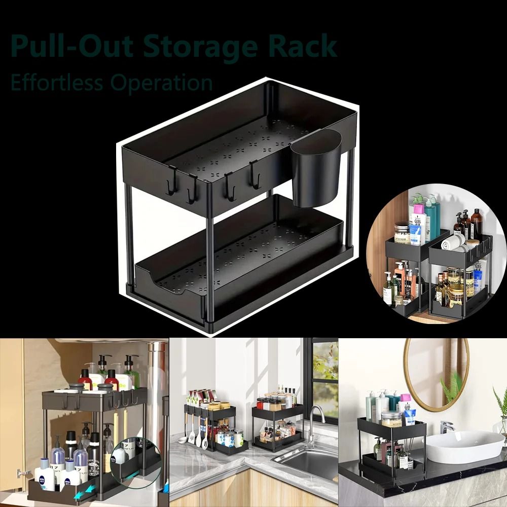 R Shape Double Layer Kitchen Countertop Organizer Pull Out Sink Storage Rack For Kitchen & Bathroom sinkrack c
