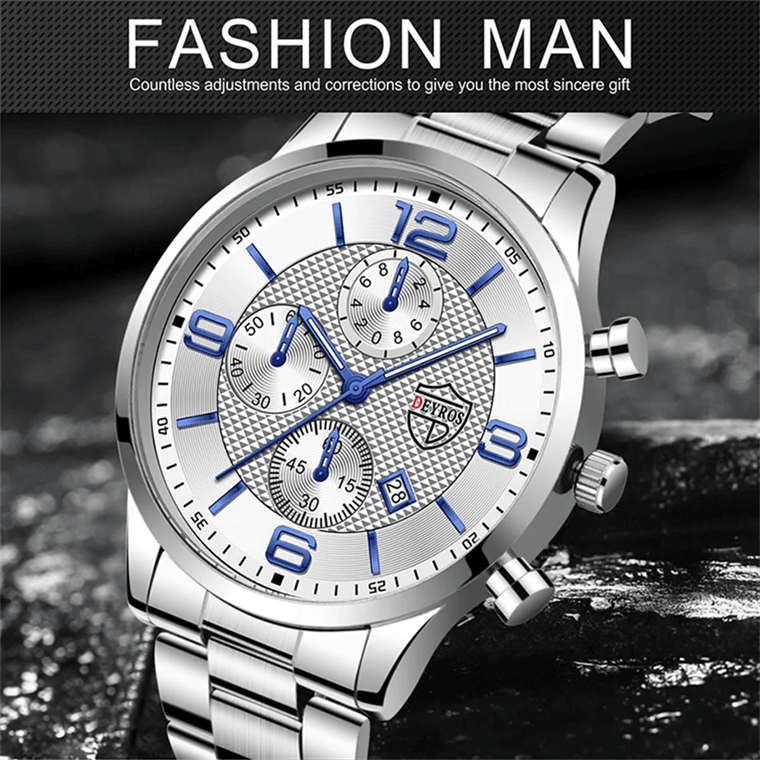 Luxury Watch For Man Waterproof, Luminous Date Week, Stainless Steel Men Watch, Casual Quartz Men's Watches rose Gold Blue