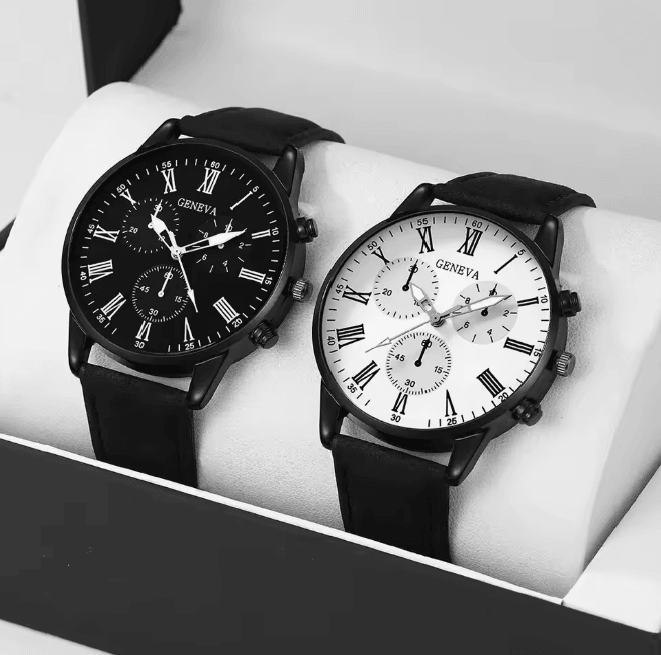 Couple Leather Quartz Watch Set Simple Casual Dial a