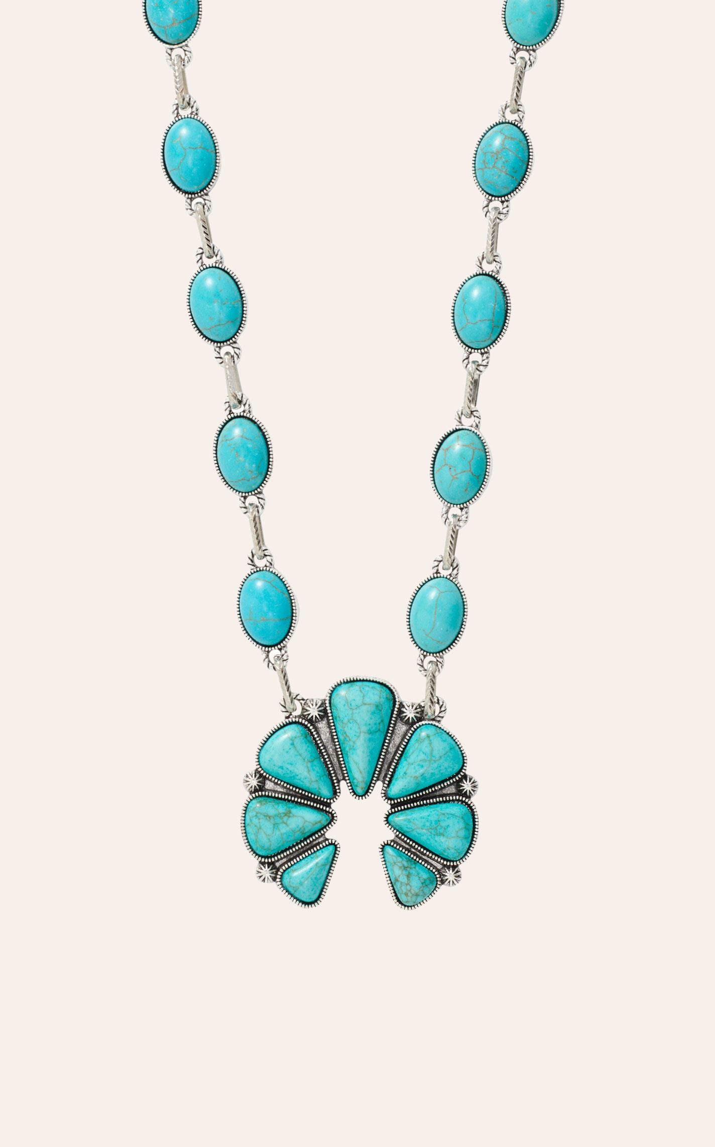 Southern Grace Silver & Turquoise Squash Blossom Teardrop Necklace - NOSZ - From Cavender's