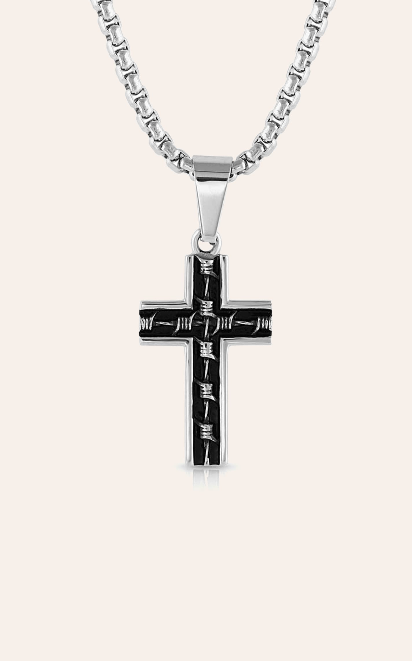 Silver Strike Men's Silver and Black Cross Pendant Necklace - NOSZ - From Cavender's