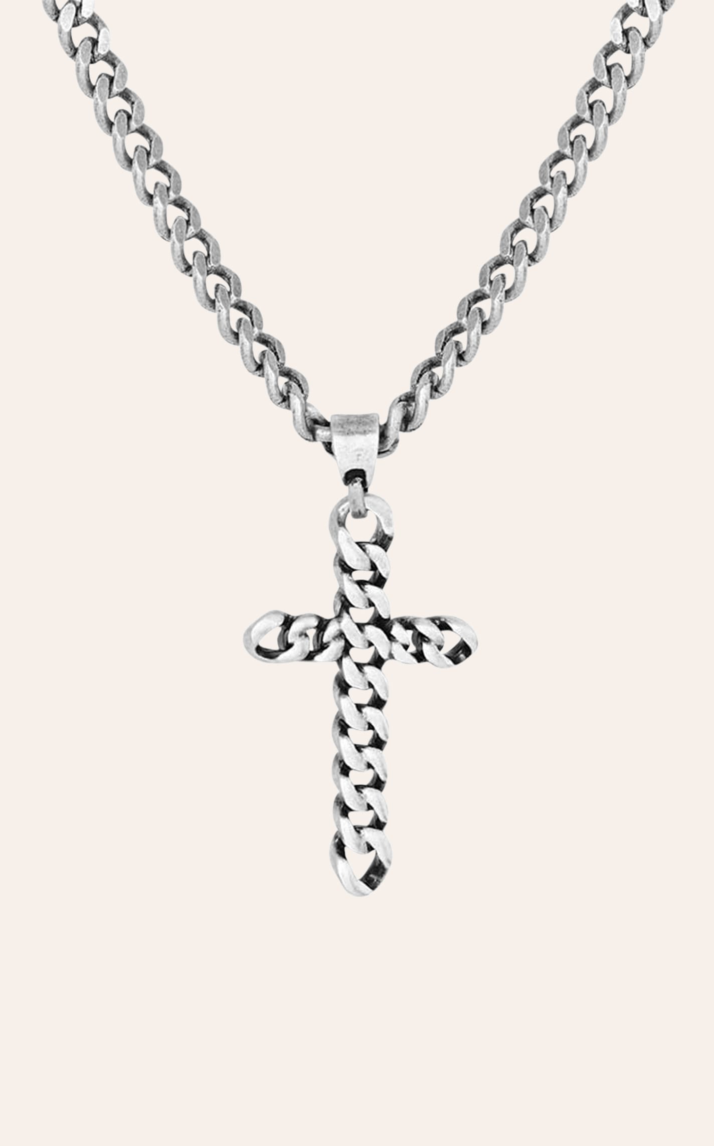 Twister Men's Silver with 3D Gold and Silver Cross Necklace - NOSZ - From Cavender's