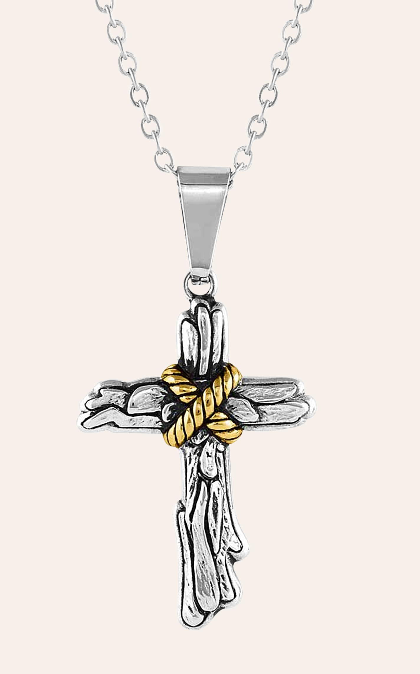 Montana Silversmiths Silver Wooden Cross Gold Rope Pendant Necklace - NOSZ - From Cavender's