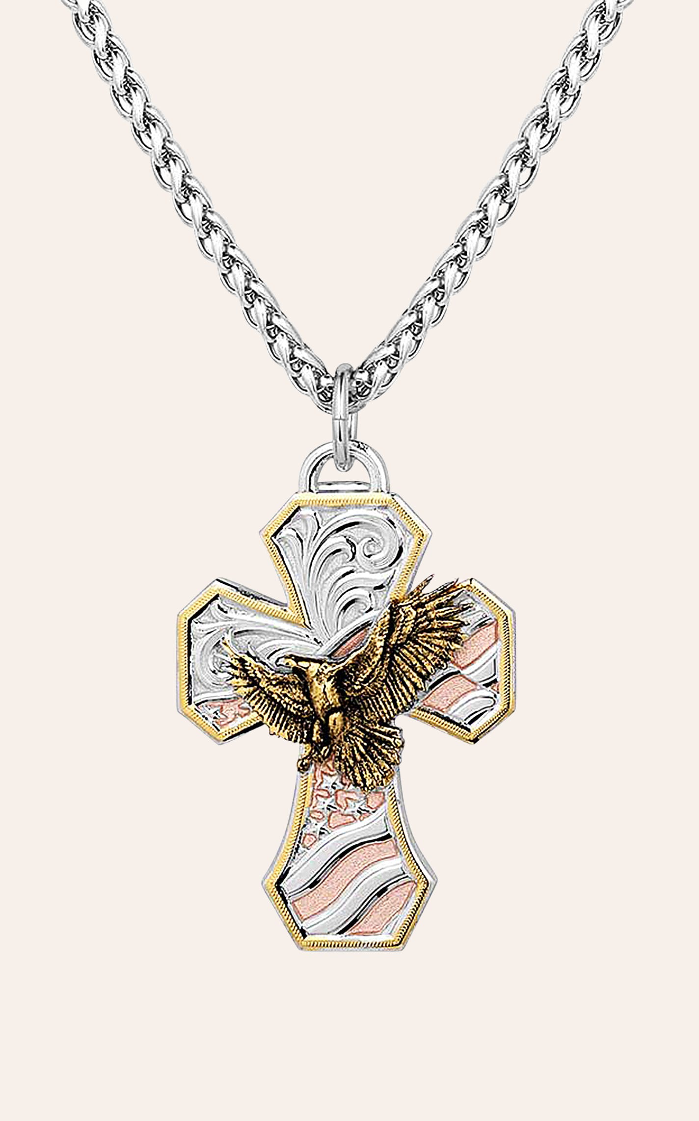 Montana Silversmiths Men's Silver Copper & Gold Eagle & Flag Cross Necklace - NOSZ - From Cavender's
