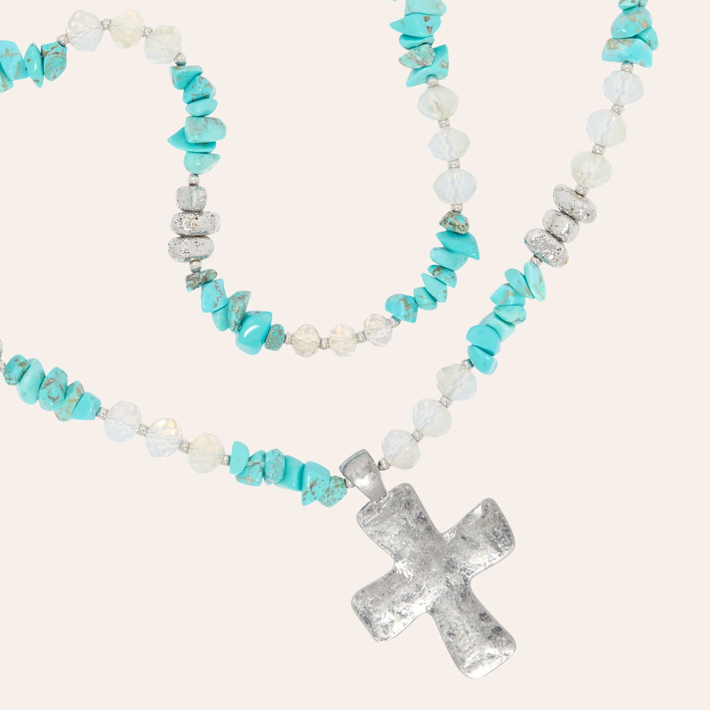 806 by Pink Panache 2 Strand Turquoise & Silver Cross Necklace - NOSZ - From Cavender's