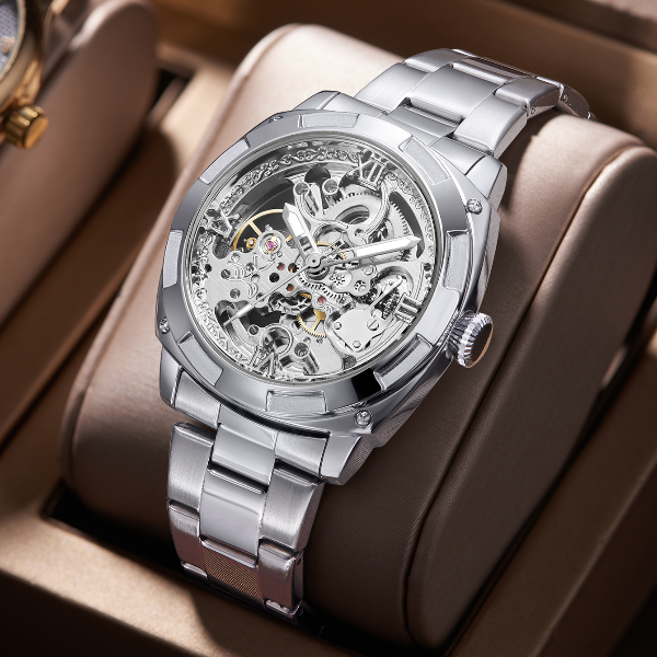 Luxury Mechanical Watches Skeleton Waterproof Men Automatic Watch Stainless Steel Mens Watch golden