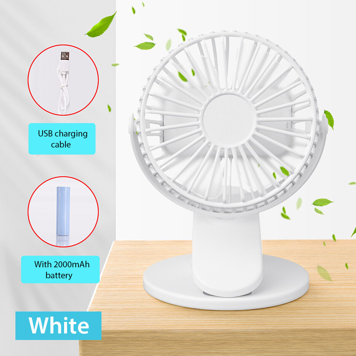 3 Speed USB Mini Cooling Fan Clip White