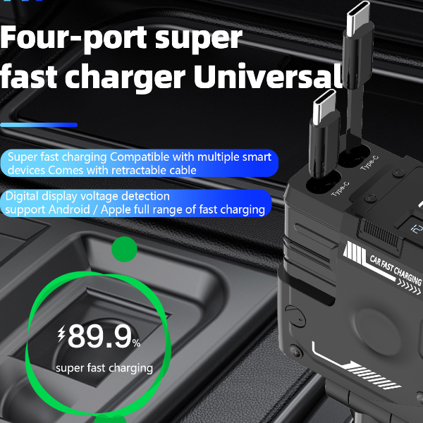 Type C Safe Charger Adapter For Car, USB Car Fast Charging Station With Digital Display, Quick Charge & Smart Detect Type C Safe Charger Adapter For Car, USB Car Fast Charging Station With Digital Display, Quick Charge & Smart Detect