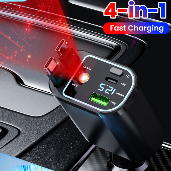 Fast Charging USB Type C Car Phone Charger, Retractable Cable For IPhone, Samsung With Star Lights c To L Cable Charger