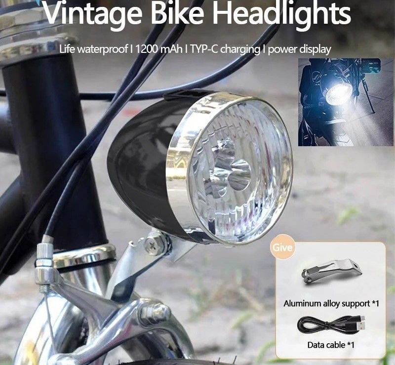 Retro Style USB Rechargeable Bicycle Front Light With Three LED rechargeable Black
