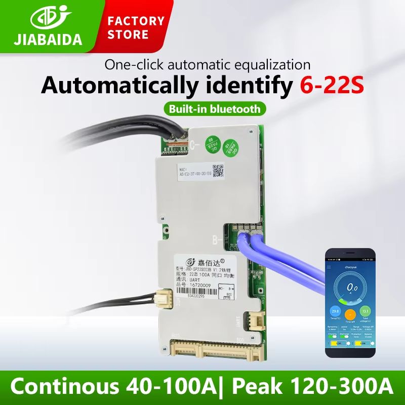 JBD Smart LiFePO4 BMS With Bluetooth 6S To 21S Balance Board For E Bike 3.2v Lfp 100a Uart Bt