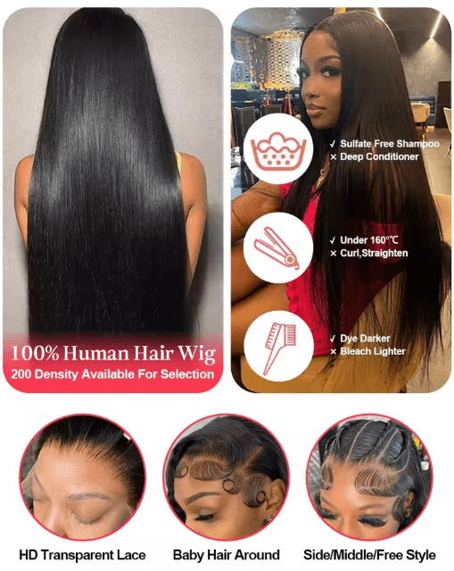 100% Human Hair Bone Straight 13x6 HD Lace Front Wig 5x5 Glueless 40 Inch 13x4 Lace Frontal Wigs Black Closure Brazilian 13x6 Hd Lace Wig 30inches 200%