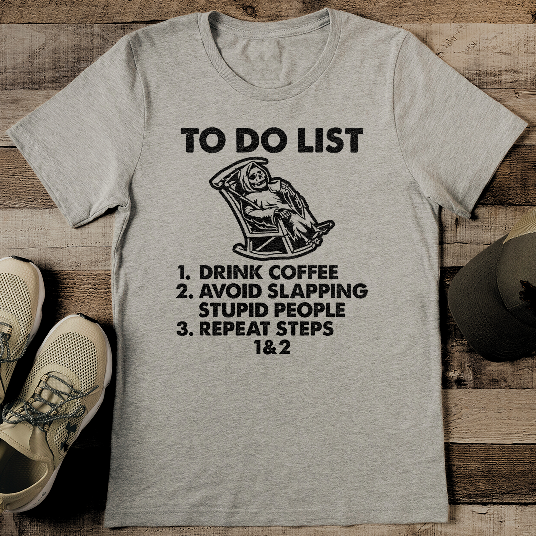 To Do List 1 Drink Coffee 2 Avoid Slapping Stupid People 3 Repeat Steps 1 & 2 Tee L Athletic Heather