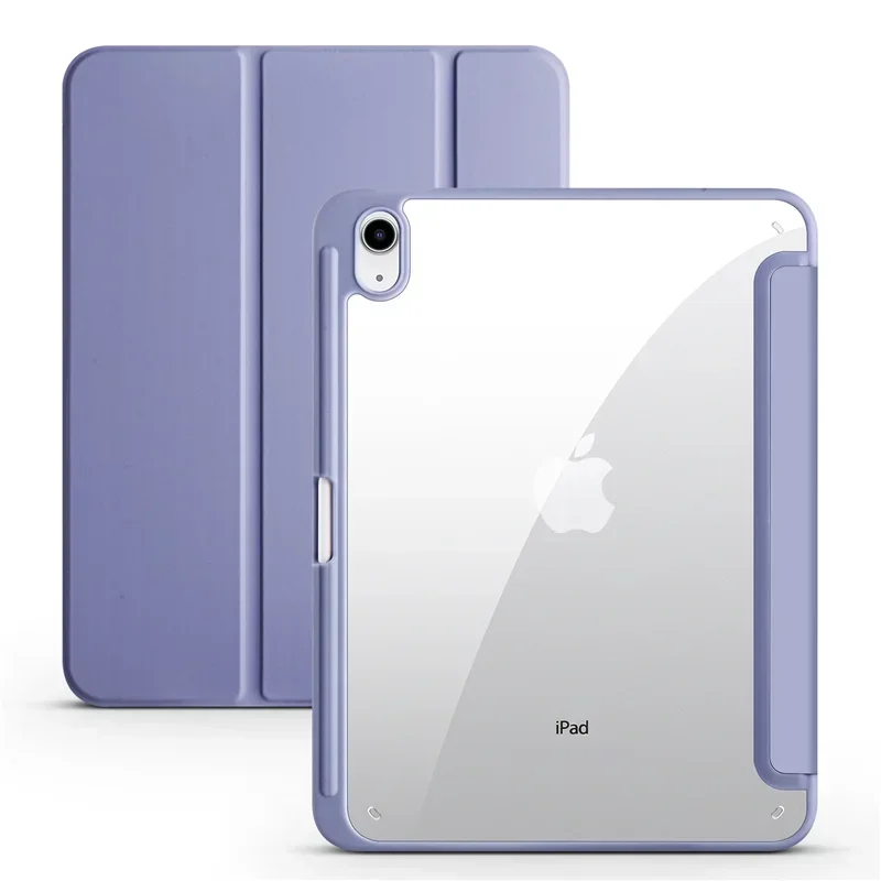 Trifold Clear Back Case With Pen Holder For IPad, Hard Acrylic Protective Stand Cover For Apple IPad lavender Gray ipad Air 11 (m2 M3)