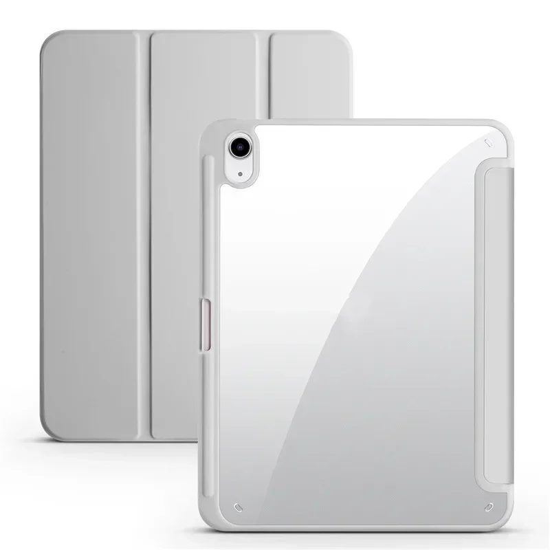 Trifold Clear Back Case With Pen Holder For IPad, Hard Acrylic Protective Stand Cover For Apple IPad gray ipad 10.2 8th 2020